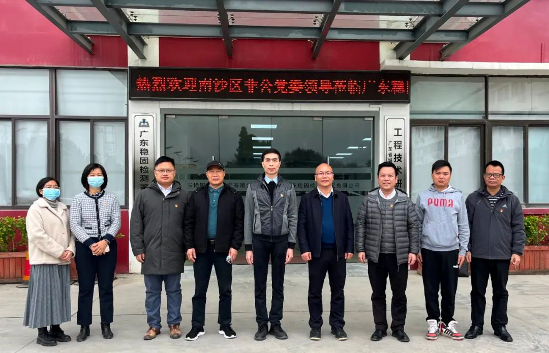 12月13日,南沙区非公党委委员简盛生一行3人莅临cq9电子在线登录调研指导党建工作。cq9电子在线登录董事长邓锦尚,党支部书记、总工程师龙耀坚等接待了来访领导。